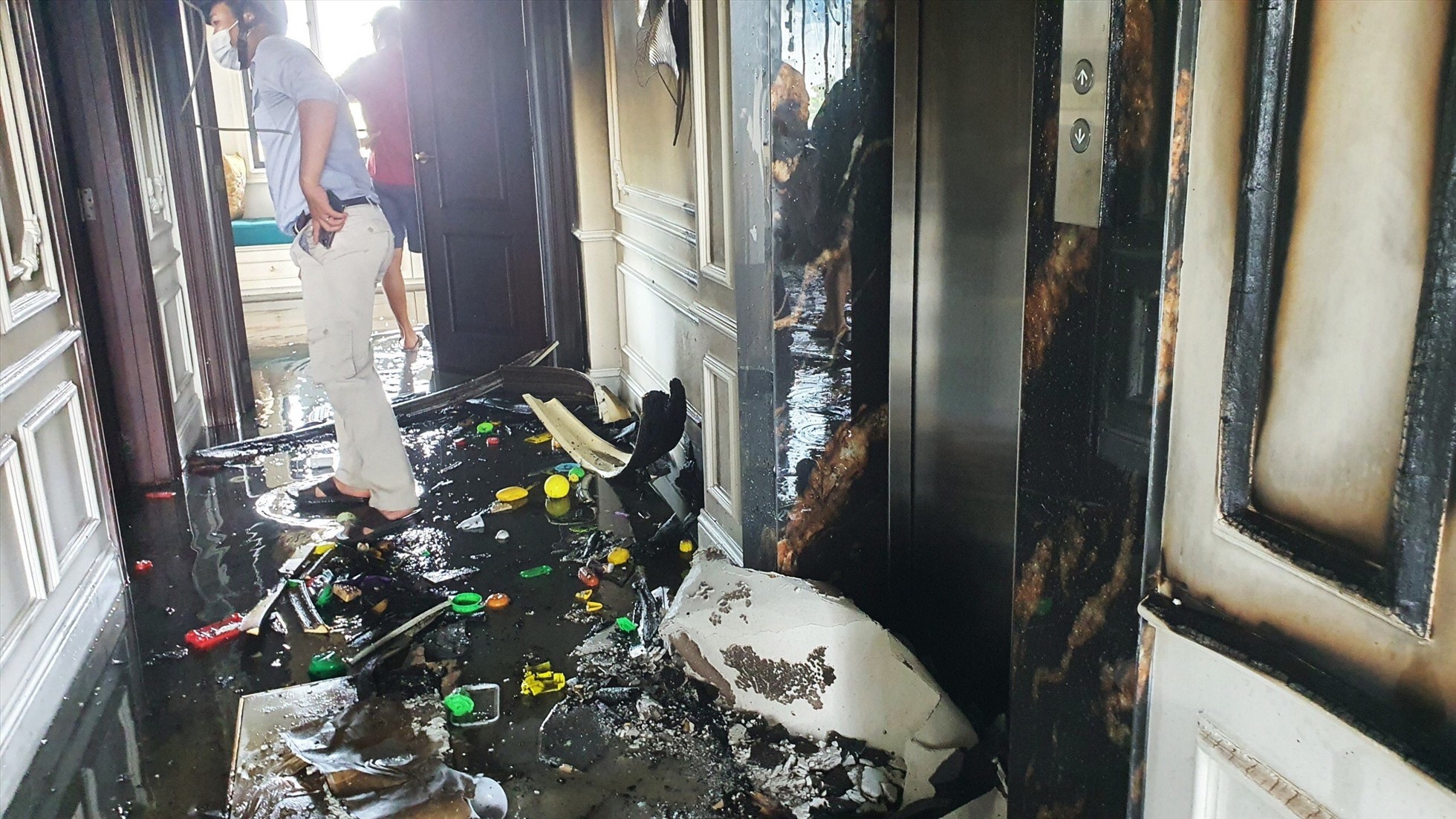 Khu vực thang máy nơi khởi phát cháy tại căn biệt thự ven sông Quán Trường (tỉnh Khánh Hòa) ngày 3/4/2023