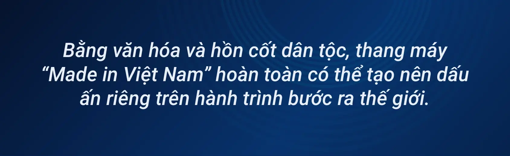 “Cuộc sống của con người đã chuyển từ ăn no, mặc ấm sang ăn ngon, mặc đẹp. Vì thế, thang máy cũng không thể chỉ dừng lại ở nhu cầu cơ bản - phục vụ việc di chuyển an toàn mà phải đáp ứng nhu cầu nâng cao - thể hiện sự kết nối xã hội, đẳng cấp, hướng tới cá nhân hóa, nơi thang máy trở thành "tuyên ngôn" và bản sắc của cá nhân, tổ chức hay công trình”.