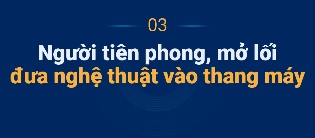 Từ góc nhìn ấy, ông là người tiên phong với ý tưởng đưa bản sắc, nghệ thuật và câu chuyện vào thiết kế thang máy. Theo ông, mỗi công trình đều có một “ngôn ngữ” và tinh thần riêng, vì thế thang máy không thể là một chi tiết lạc lõng trong tổng thể kiến trúc.