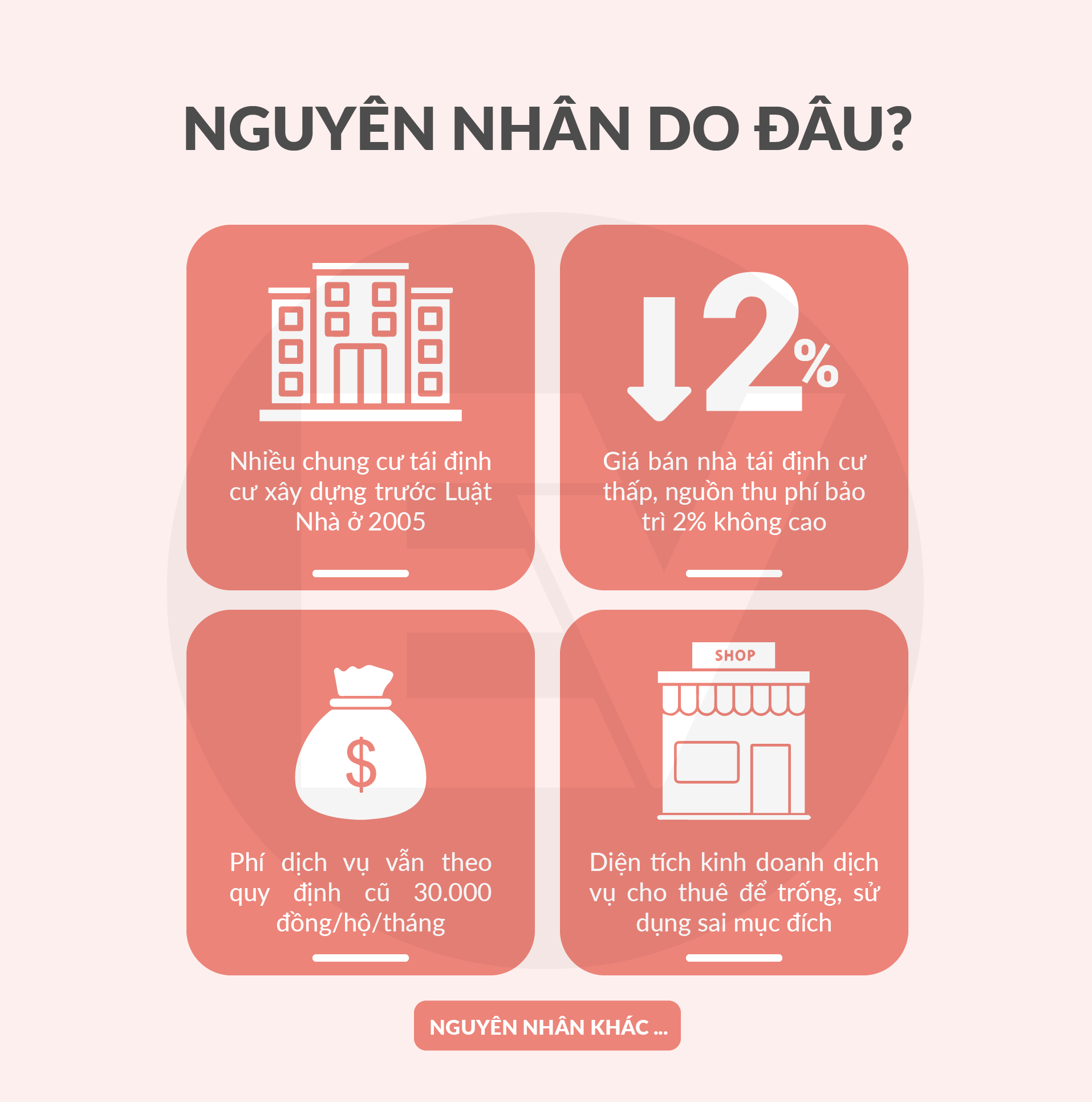 Việc thu bổ sung kinh phí bảo trì 2% khi kinh phí bảo trì đã hết hoặc không đủ, nay mức thu phí để vận hành cơ bản cũng không thể đáp ứng, bù đắp để duy trì công tác vận hành nhà tái định cư.