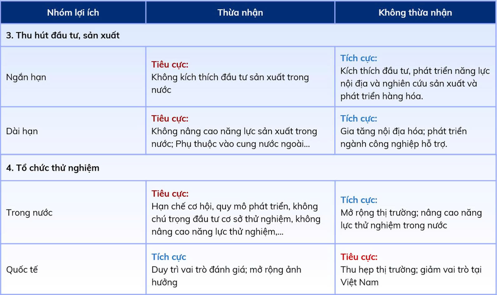 Tuy nhiên, nếu áp dụng trong thời gian dài, thừa nhận đơn phương có thể làm chậm quá trình hình thành năng lực thử nghiệm và năng lực sản xuất trong nước, đồng thời gia tăng mức độ phụ thuộc vào nguồn cung và kết quả đánh giá từ bên ngoài.
