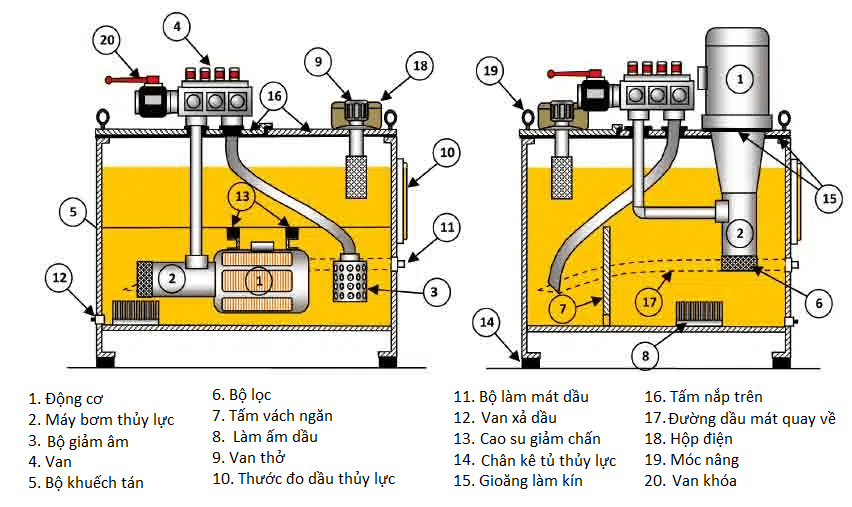 Máy sưởi bình chứa thủy lực sẽ được lắp vào trong bình chứa thủy lực và giữ nhiệt độ dầu thủy lực ở mức cố định, thường được ứng dụng tại các khu vực thời tiết lạnh, có băng tuyết.