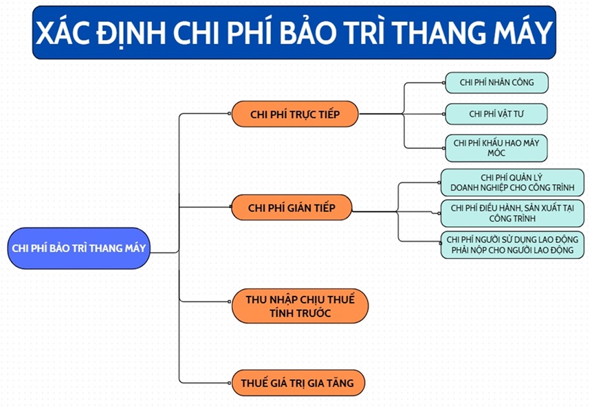 - Phần lớn chi phí dịch vụ bảo trì thang máy được dùng để trả lương cho nhân công, hay còn gọi là chi phí nhân công. Theo TCCS 02:2024/TCCS Định mức lao động trong bảo trì và sử chữa thang máy, có thể tính được định mức chi phí nhân công cho việc bảo trì từng công trình, chi phí này thay đổi theo số tầng phục vụ của thang máy được bảo trì.