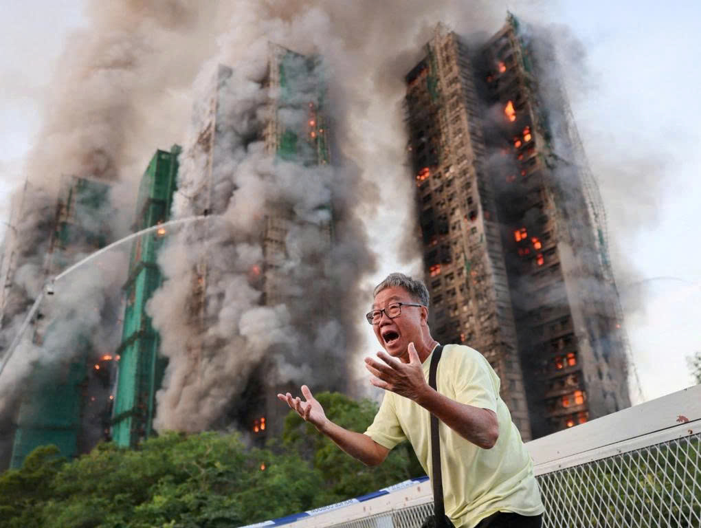 Người dân bật khóc khi chứng kiến đám cháy. Nhiều người đã được sơ tán trong vụ cháy cụm chung cư Wang Fuk Court ở Hong Kong ngày 27/11/2025.