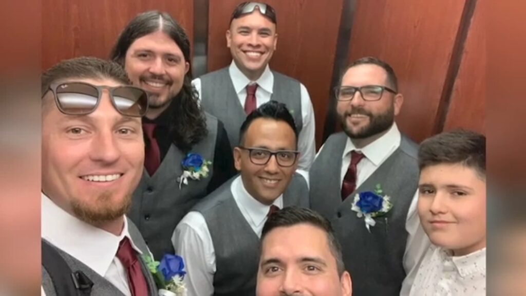 Brandon Valdez bị mắc kẹt trong thang máy với sáu phù rể trước khi đội cứu hỏa Clovis giải cứu anh.
