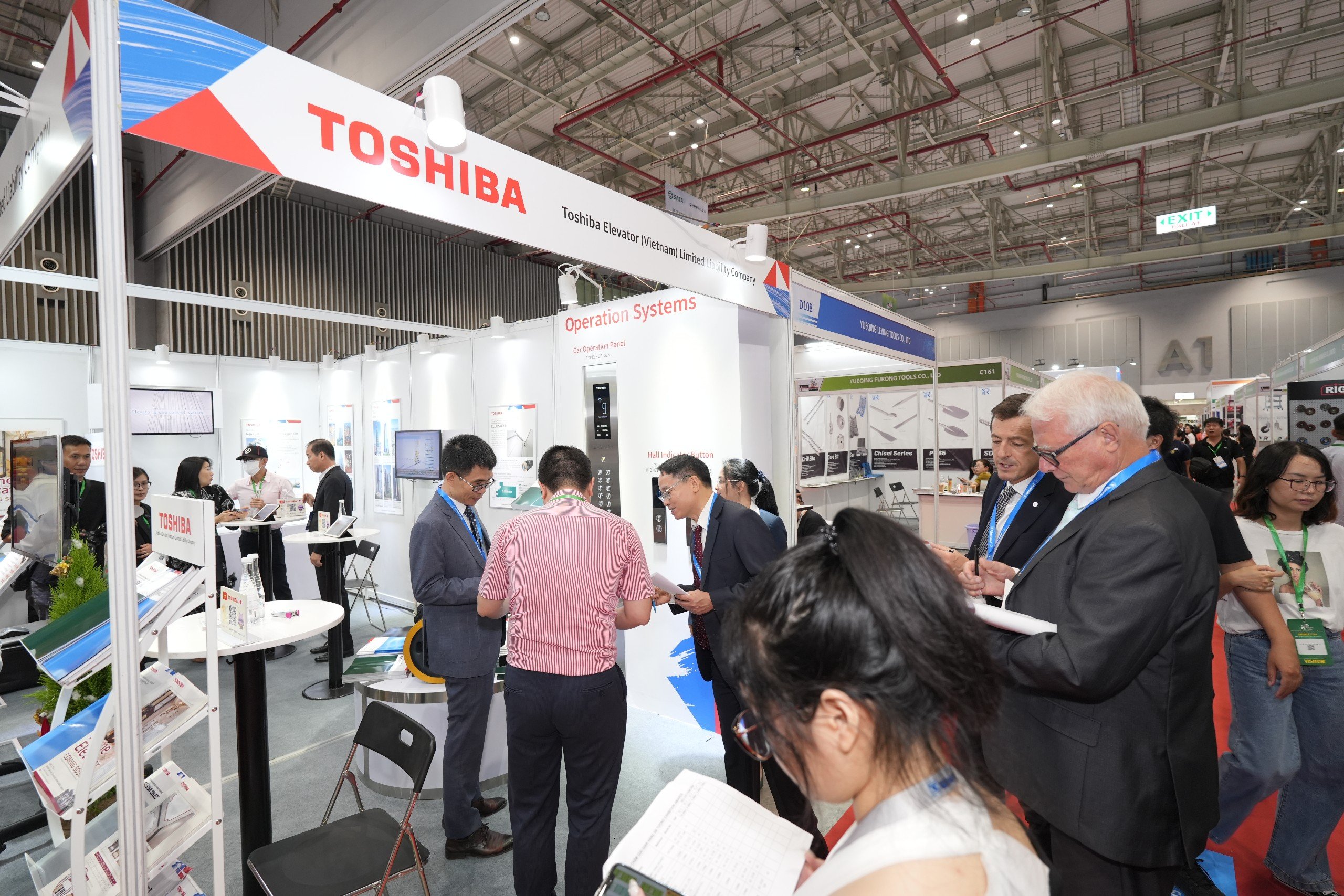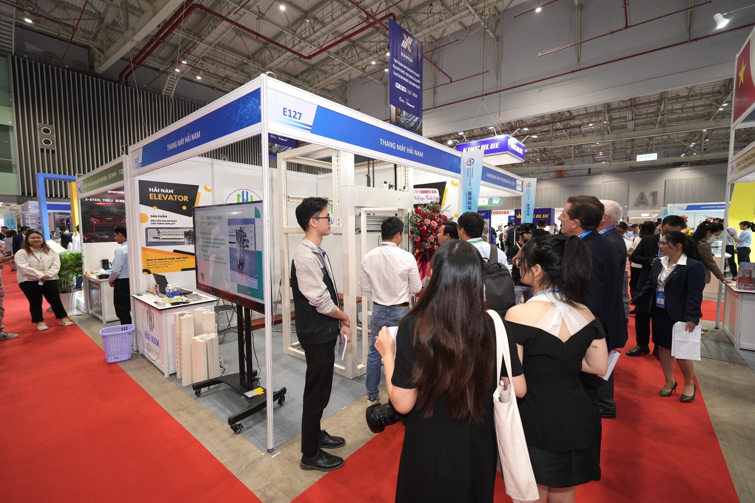 Ngay sau lễ khai mạc, đoàn đại biểu Vietnam Elevator Expo 2023 cùng khách tham quan đã ghé thăm các gian hàng trưng bày của các đơn vị tiêu biểu như TOSHIBA, Smart Store, GamaLift, Gama Service, Phú An, Sáng Nghiệp, Thiên Nam, Hải Nam,...