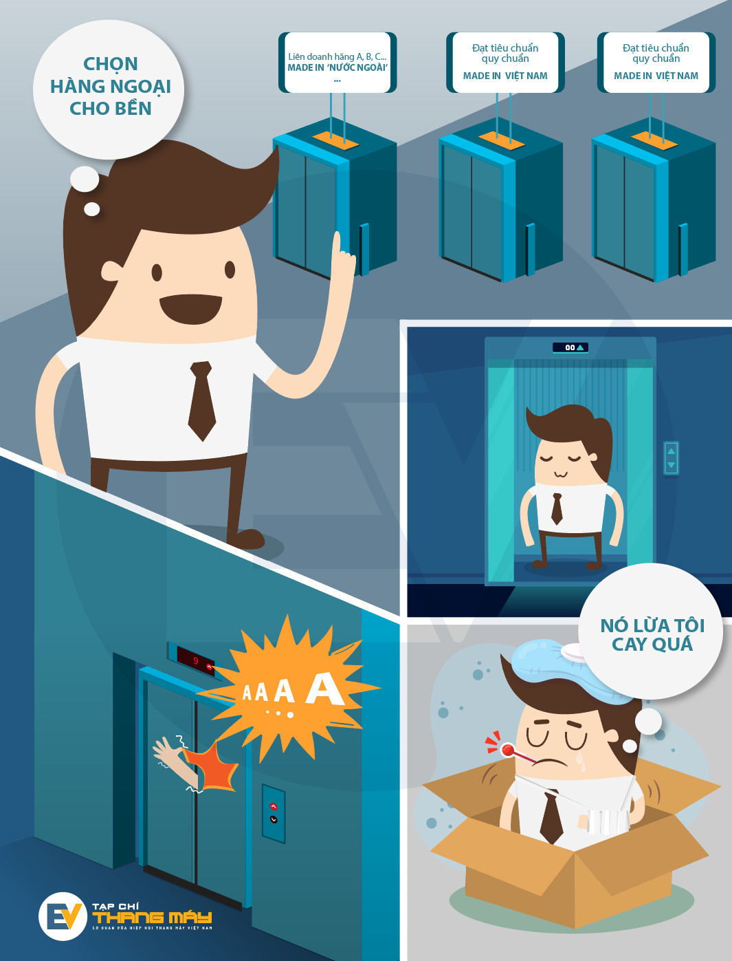 Trong khi một bộ phận doanh nghiệp sản xuất thang máy đang cố gắng từng bước nội địa hóa, xây dựng sản phẩm thang máy mang thương hiệu “Made in Vietnam”, dù đạt các quy chuẩn, tiêu chuẩn theo quy định của pháp luật nhưng lại không được người tiêu dùng thừa nhận, đặc biệt trong khối mua sắm công.