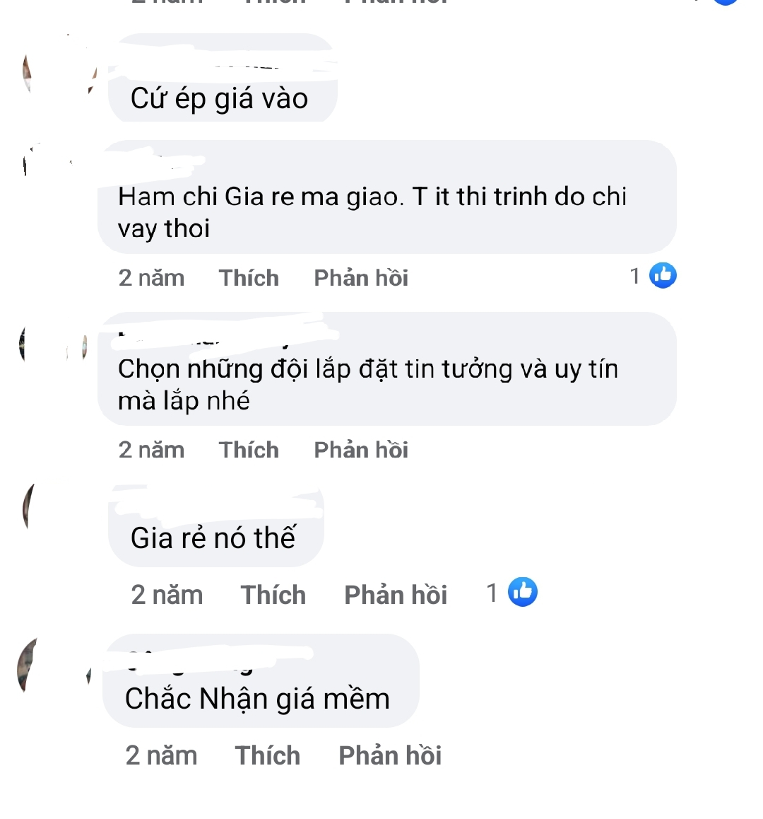 Một vài bình luận trong một bài đăng “bóc phốt” thợ lắp đặt làm ẩu