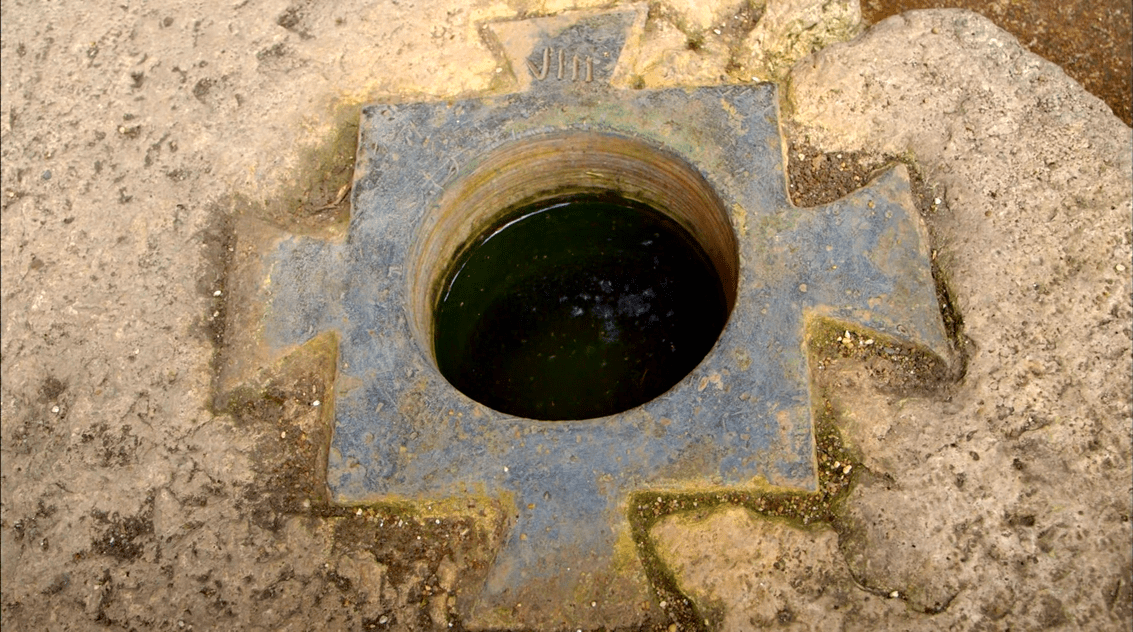 Các vết lỗ trên mặt sàn xuất hiện dọc theo lối đi khu vực ngầm của đấu trường La Mã (Ảnh chụp từ bộ phim tài liệu “Colosseum: Roman Death Trap”)