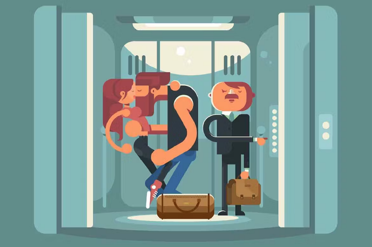 Cũng có không ít người xem thang máy - một nơi công cộng, như là phòng riêng của mình. Họ có thể cười đùa hô hố với đám bạn; nói chuyện điện thoại ầm ầm, đôi khi còn bật loa ngoài để cho tất cả mọi người nghe thấy,... Đấy là chưa kể tòa nhà văn phòng nơi tôi làm thi thoảng lại có các cặp đôi hẹn hò nhau đi ăn trưa rồi bước vào thang máy làm mấy hành vi thân mật bất chấp sự khó chịu của người đi cùng.