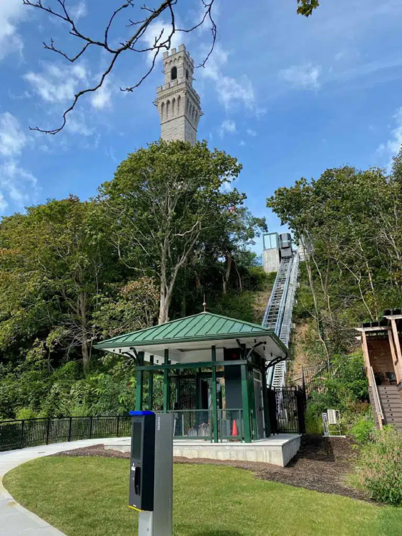 Thang máy nghiêng trên Phố Bradford chào đón khách đi xe đến Đài tưởng niệm Hành hương - Ảnh của Đài tưởng niệm Pilgrim và Bảo tàng Tỉnh Pilgrim Monument