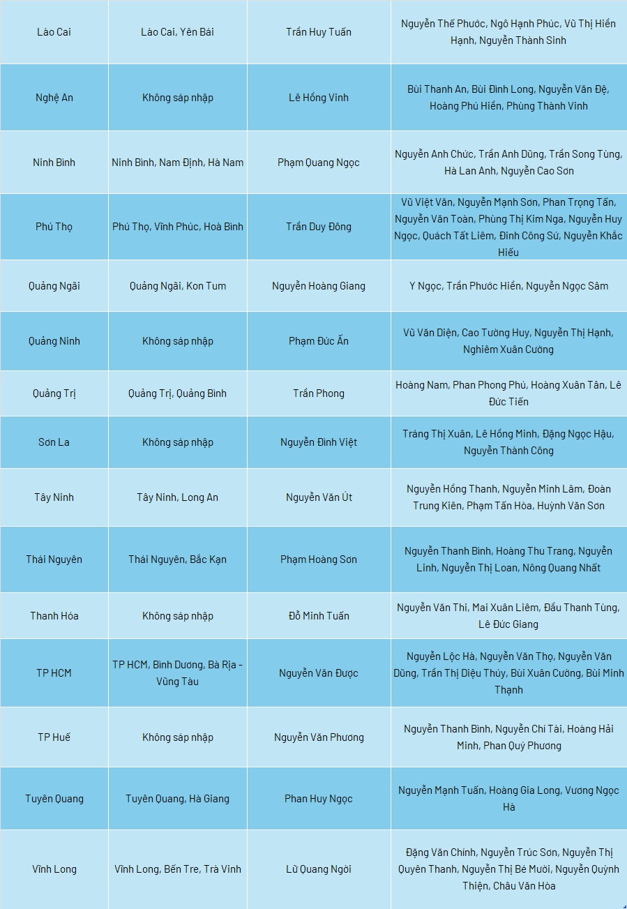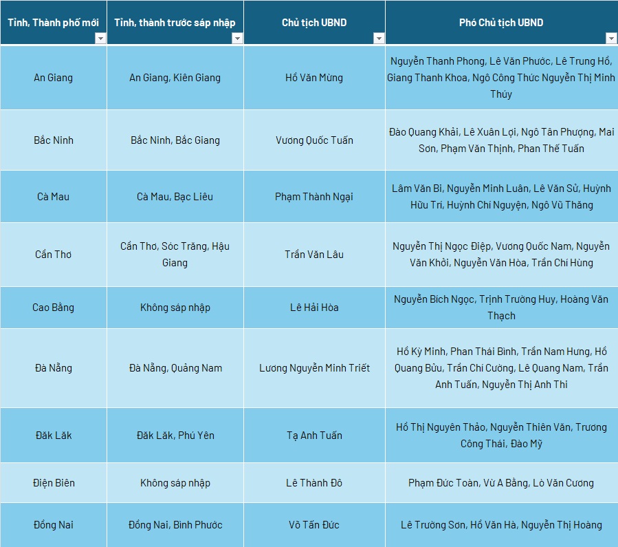 Danh sách Chủ tịch, Phó Chủ tịch UBND 34 tỉnh, thành sau sáp nhập, nhiệm kỳ 2021 - 2026