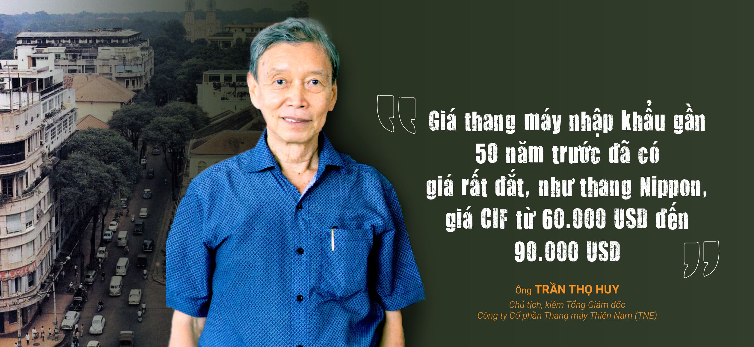Ông Trần Thọ Huy: Thời điểm này, thang máy chủ yếu được lắp đặt cho các công trình công cộng vì giá nhập nguyên chiếc khá đắt. Tôi nhớ thang máy Nippon khi tại thị trường Việt Nam với 5-8 điểm dừng, tốc độ chỉ 1m/s mà giá CIF (PV - giá CIF là giá tại cửa khẩu của bên mua hàng, đã bao gồm chi phí vận chuyển và bảo hiểm hàng hóa đến cửa khẩu bên nhận hàng) đã phải từ 60.000 USD đến 90.000 USD (đây là số tiền khổng lồ thời điểm đó, quy ra giá trị có thể tương đương 90 – 150 tỷ bây giờ).