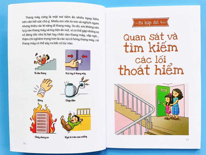 Cách tốt nhất để bảo vệ các em là hướng dẫn cho các em cách sử dụng đúng và cảnh báo về các nguy cơ đó. Đó là những nội dung được thể hiện trong bộ sách 15 bí kíp giúp tớ an toàn do Nhà xuất bản Kim Đồng phát hành, trong đó, hai cuốn sách Cẩm nang an toàn chung cư và Cẩm nang phòng tránh tai nạn thương tích đang đề cập đến.