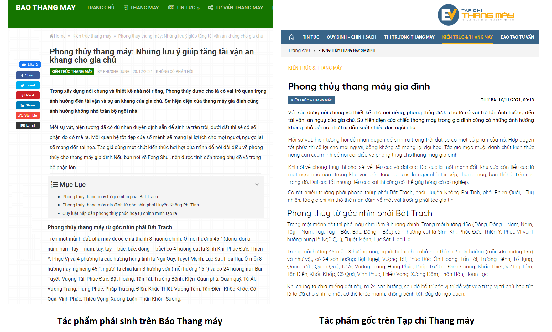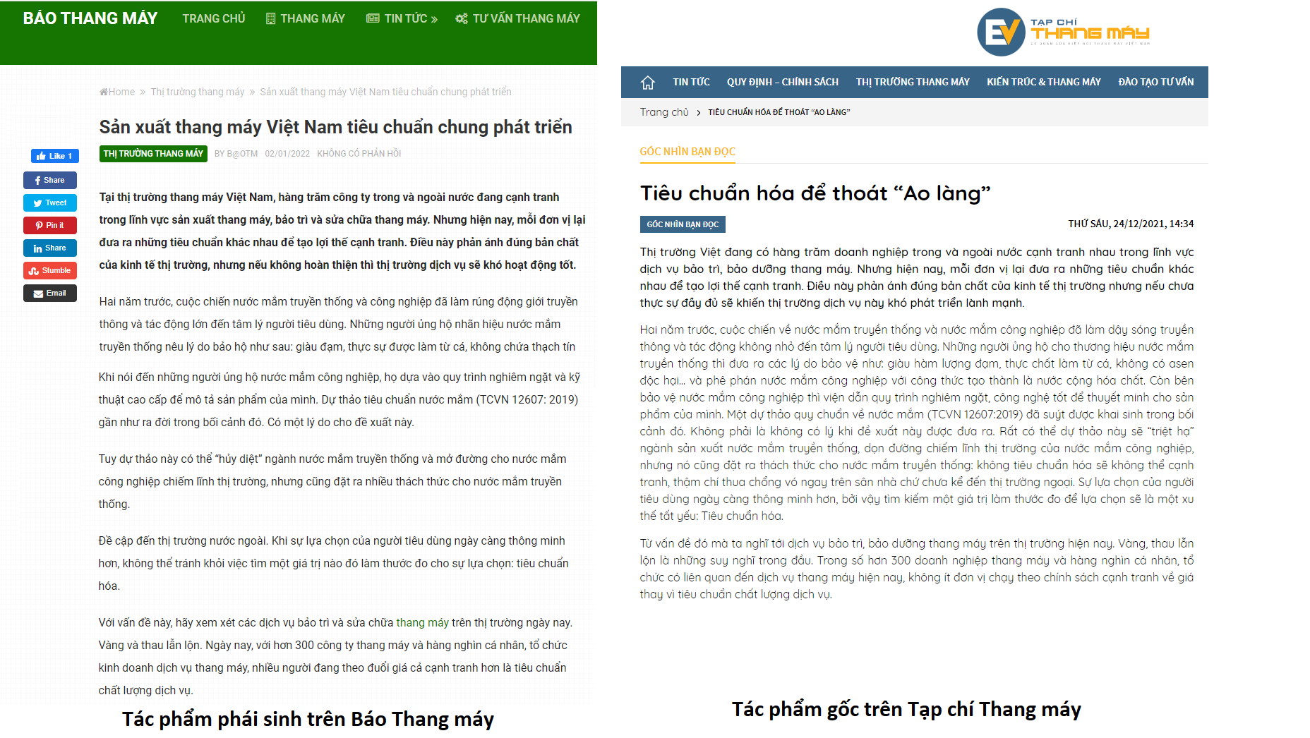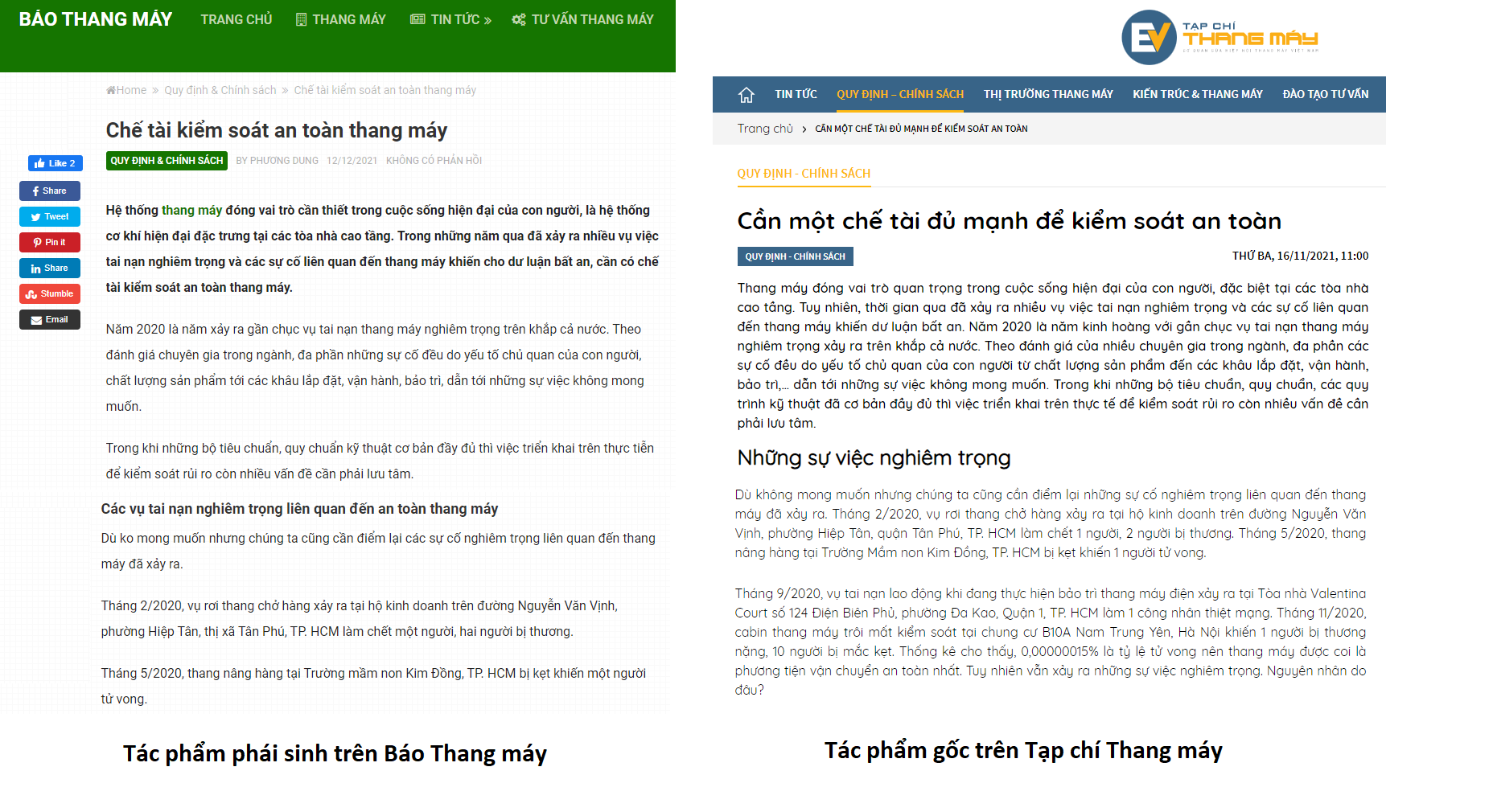 Các mốc thời gian đều cho thấy Báo Thang máy đăng tải sau Tạp chí Thang máy và nội dung chỉ chỉnh sửa về từ ngữ, cấu trúc câu,...