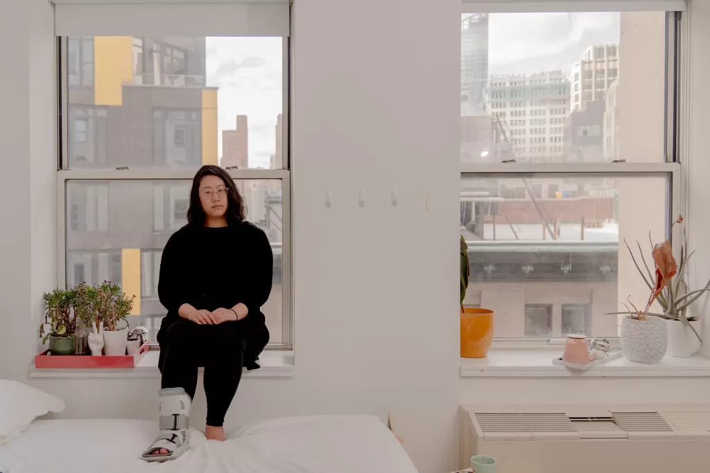Chen đã phải vật lộn để lên căn hộ ở tầng 22 kể từ khi bị gãy chân - Nguồn: New York Times