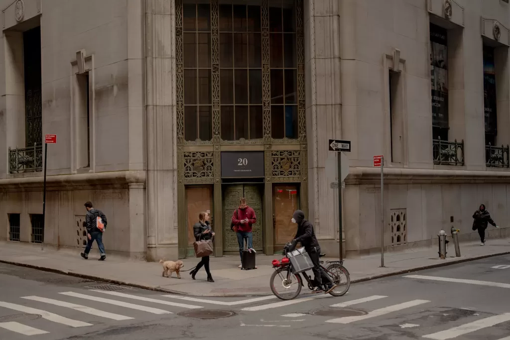 Lối vào của tòa nhà được trang trí bằng các bản sao của tiền xu từ khắp nơi trên thế giới, đại diện cho các quốc gia nơi Ngân hàng Thành phố Quốc gia của New York (sau này là Citibank) mở chi nhánh.
