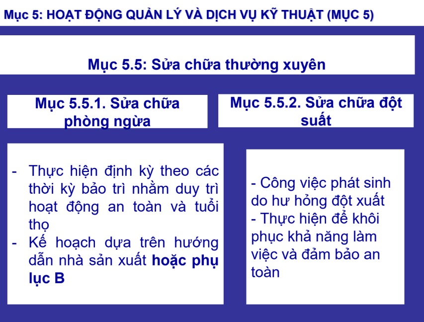 Đồng thời, chuẩn hóa quy trình dịch vụ bảo trì, sửa chữa, hiện đại hóa; Tạo cơ sở để cơ quan quản lý nhà nước, doanh nghiệp và chủ sở hữu xây dựng định mức, kế hoạch bảo trì – sửa chữa rõ ràng, nhất quán.