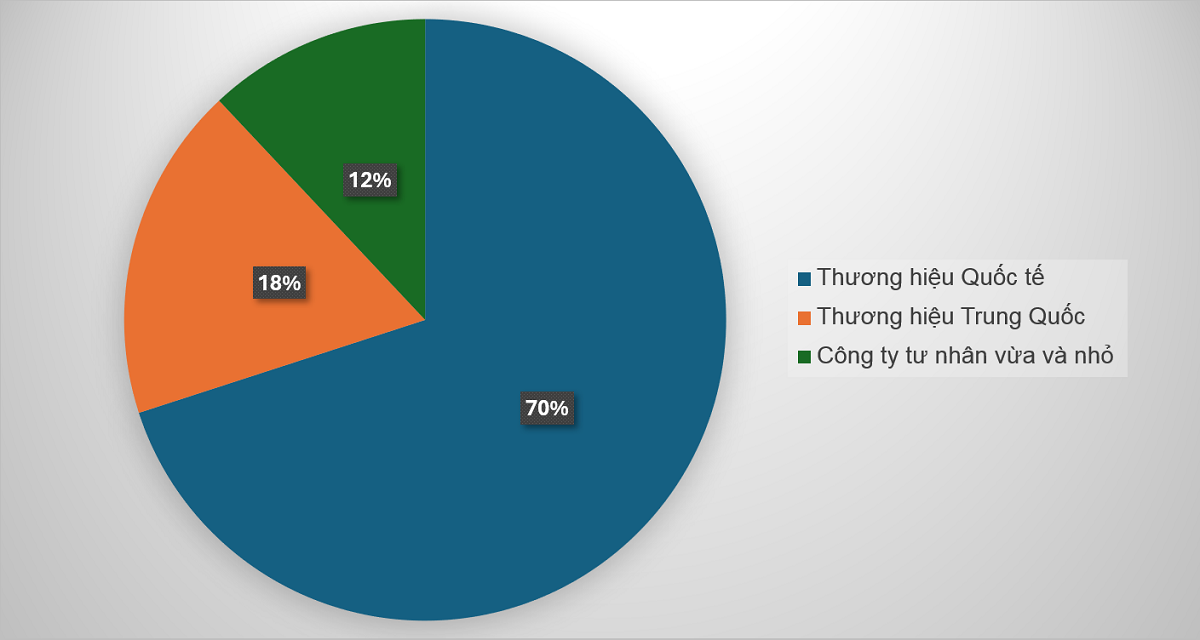 According to the China Elevator Association, citing the Asset Information Network – Qianji Investment Bank, in 2023, international brands accounted for approximately 70% of the domestic market, while domestic elevator brands accounted for about 18% of the market share in terms of sales. The remaining market share is divided among small and medium-sized private companies.