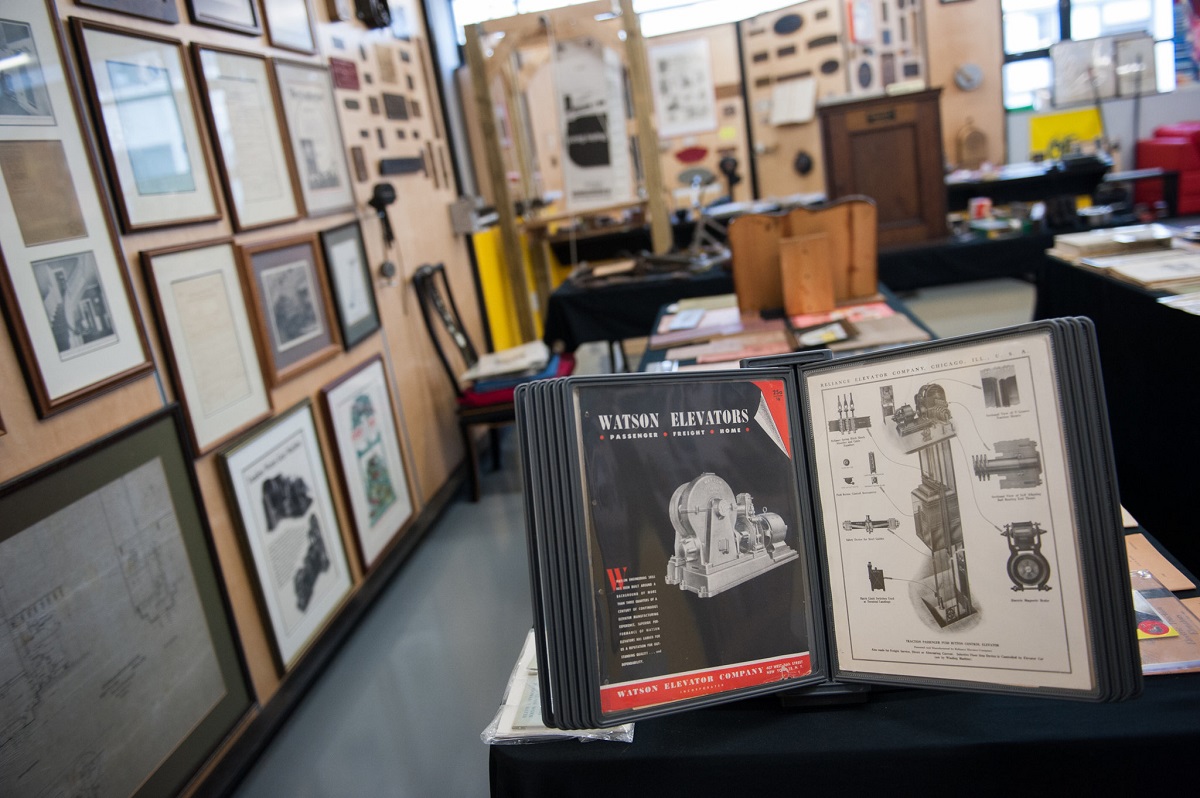 Patrick cho biết, có khoảng 4000 hiện vật được giới thiệu tại đây cho khách tham quan. Đó là những nút bấm, những bảng hiển thị, các đoạn rail dẫn hướng thang máy, các giấy chứng nhận, tài liệu hướng dẫn và sử dụng thang máy, giấy phép kiểm định thang máy từ năm 1950…