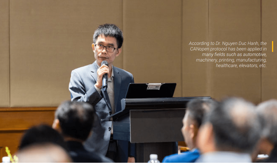 “CANopen is an open data transmission protocol that represents standardization that all enterprises can access. However, the application technologies invested and researched by enterprises themselves bring the potential for development, creating superior products, new and pioneering inventions,” said Dr. Nguyen Duc Hanh at the seminar.