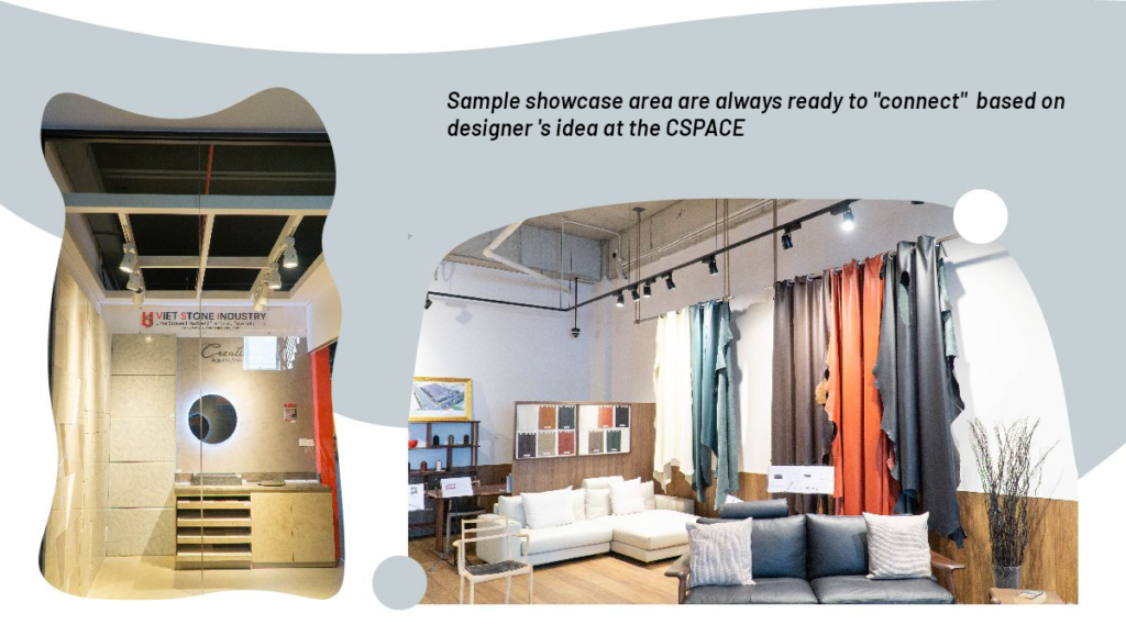 The showrooms of sample materials and furniture are always ready to "connect" according to the idea by designer right at CSPACE