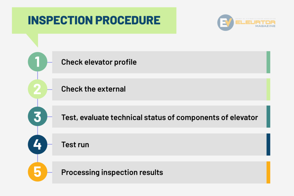 – When the elevator has inspection results that do not meet the requirements, only the steps mentioned in points a and b above must be followed, which must clearly state the reason for the elevator failing to meet the inspection requirements, and propose the establishment, remedial action and time limit for implementation of such recommendations; at the same time send the inspection record and notify the local labor state management agency where the elevator is installed and used.