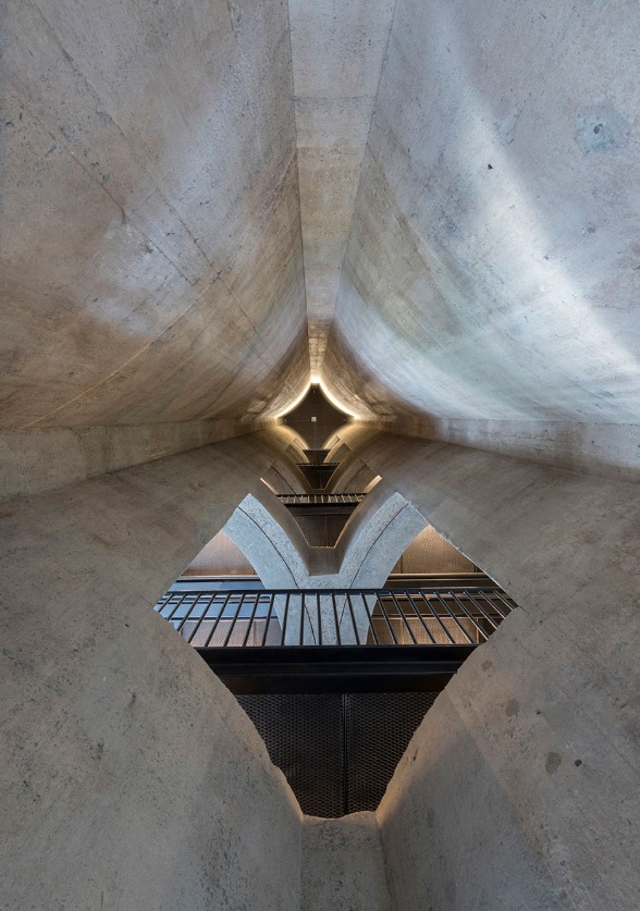 The original Grain Silo complex featured 42 concrete cylinders, each nearly 33 meters high, designed for the storage and transport of grain. The conversion from a grain storage warehouse into an art museum posed a major challenge: How to transform an enclosed, dark, and densely packed structure like the silo tubes into an open, bright, and easily accessible space for visitors, while still preserving its distinctive industrial character.