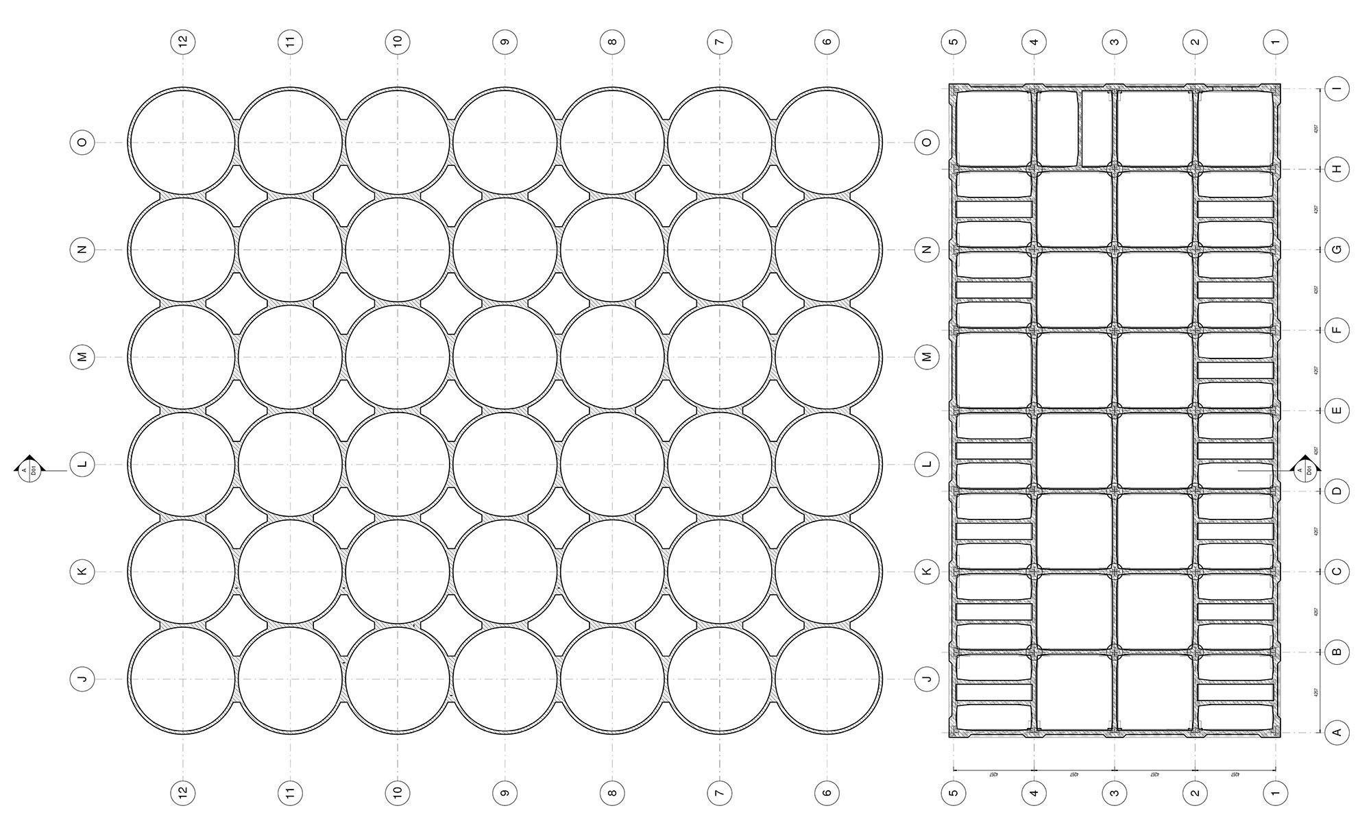 The existing floor plan revealed a dense cluster of silo tubes, forming a truly unique structure