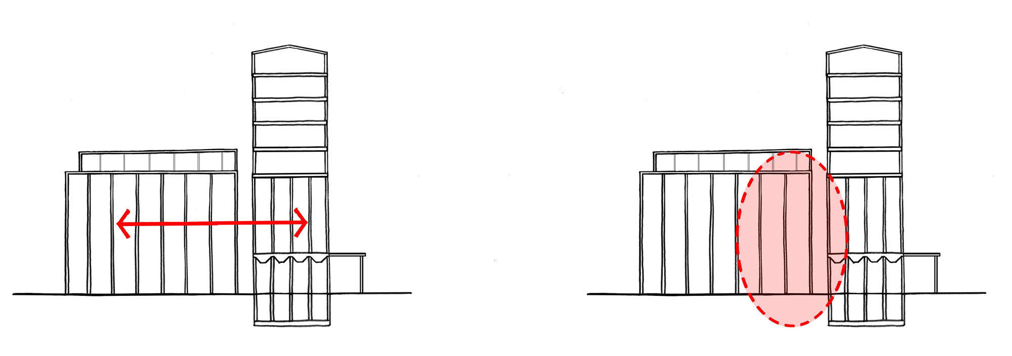To break away from the rigid geometry of the original structure, Heatherwick drew inspiration from the soft curves of a corn kernel, subtly evoking the city of Cape Town’s grain-industry heritage. The diagram illustrates the architect’s approach: using a carved-out void to connect the two main functional volumes of the building.