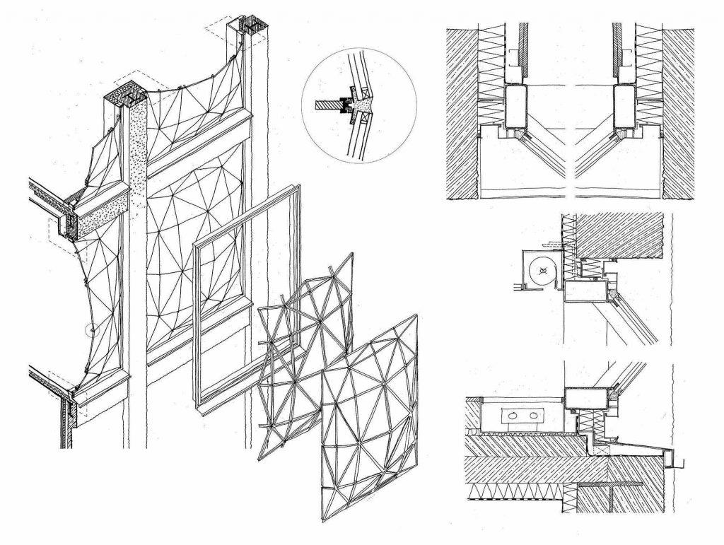 One of the main requirements was to introduce natural light deep into the building. Heatherwick collaborated with the Mazor Aluminum group to create large, pillow-shaped glass windows with diamond-cut detailing, carefully installed within the original high-level concrete frames. Each window is made up of 56 interlocking glass panes. As sunlight passes through them, the interior ambiance changes throughout the day.