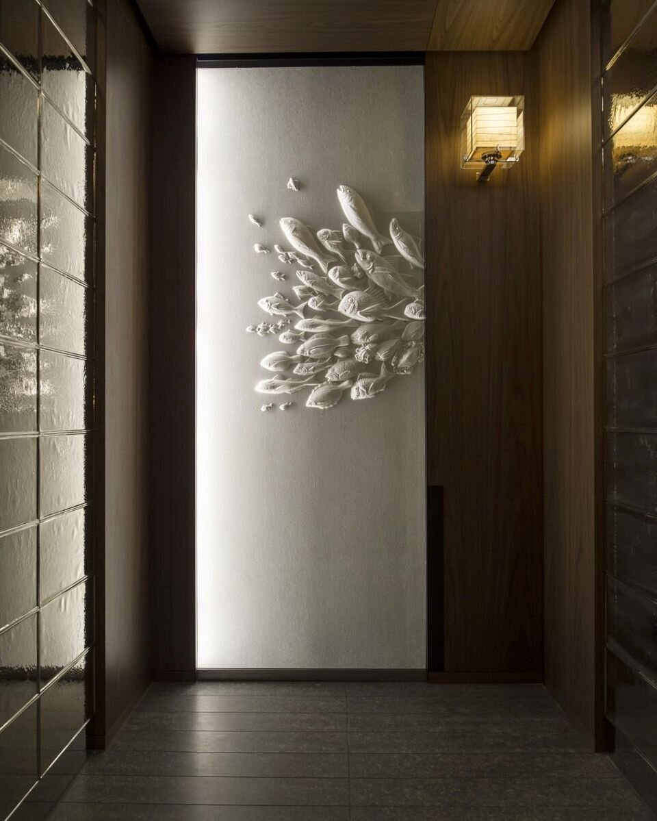 Soft, linear LED lighting enhances the distinctive textures of the washi artworks, creating a space that is at once traditional and contemporary, intimate yet magical. Every detail and every image tells part of Japan’s cultural story, imbued with the spirit of Nagata’s artistry.