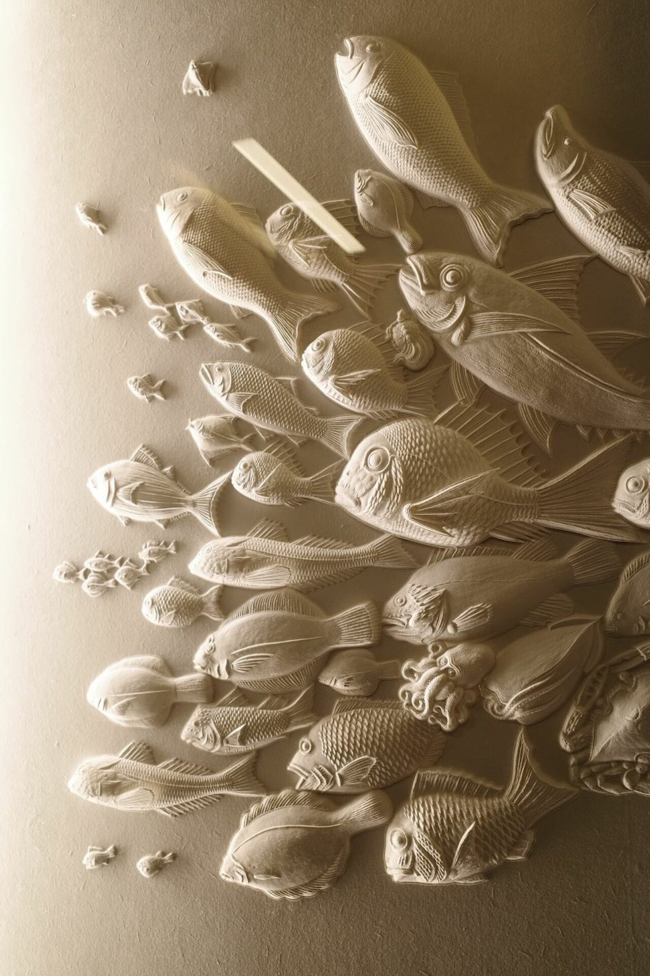 Nagata produced five separate works for the five elevators at Andaz Tokyo, using a total of 281 wagashi molds. Each piece was given a unique name linked to a Japanese myth, and the collection as a whole was titled “White Distilling Boxes” - a reference to the elevators as “boxes” preserving cultural heritage.