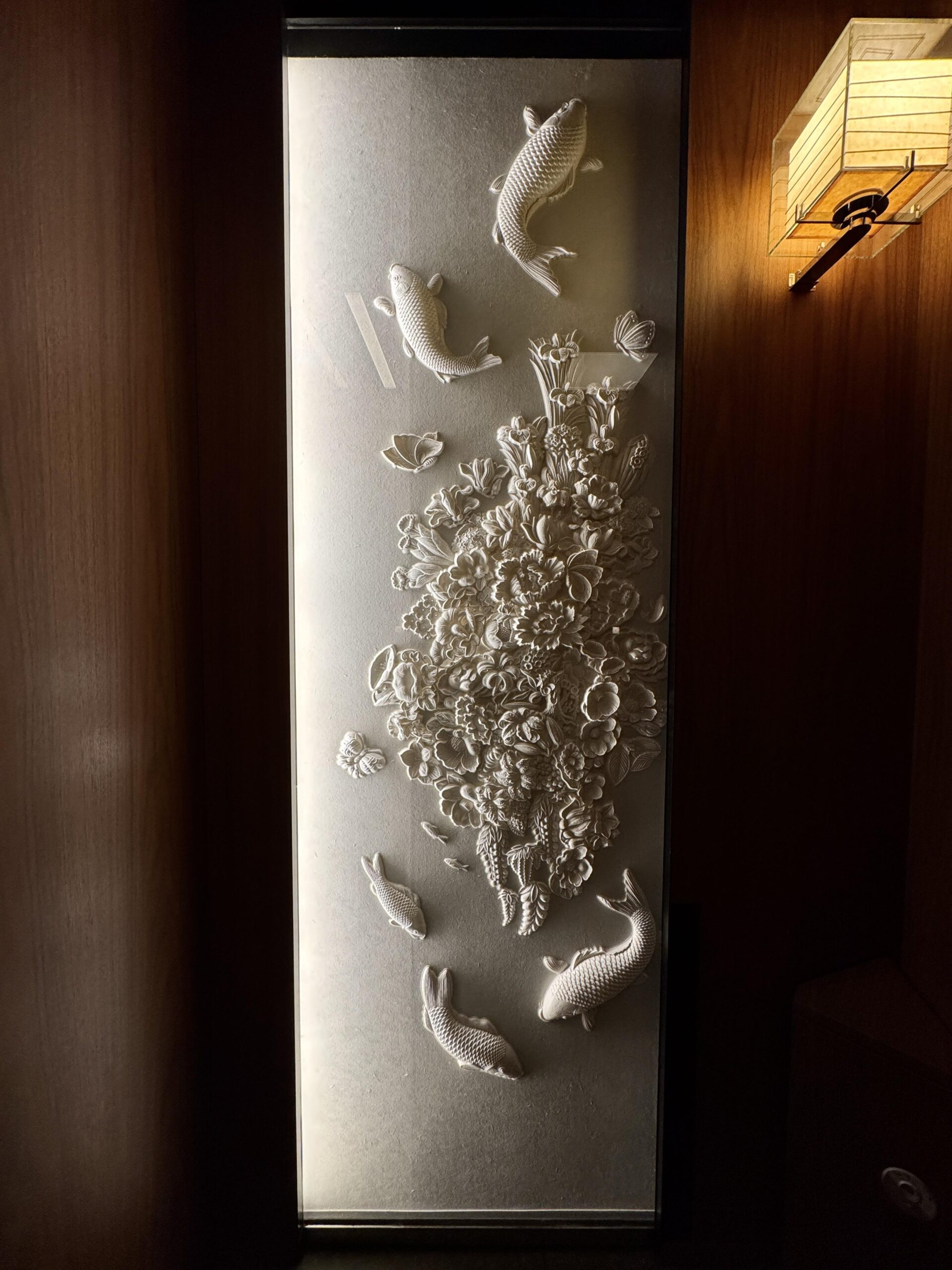 This fusion extends beyond the use of washi, finding further expression in the main lobby with “Infinite Universe”, a large-scale wooden artwork by artisan Shigemitsu Kotaka.