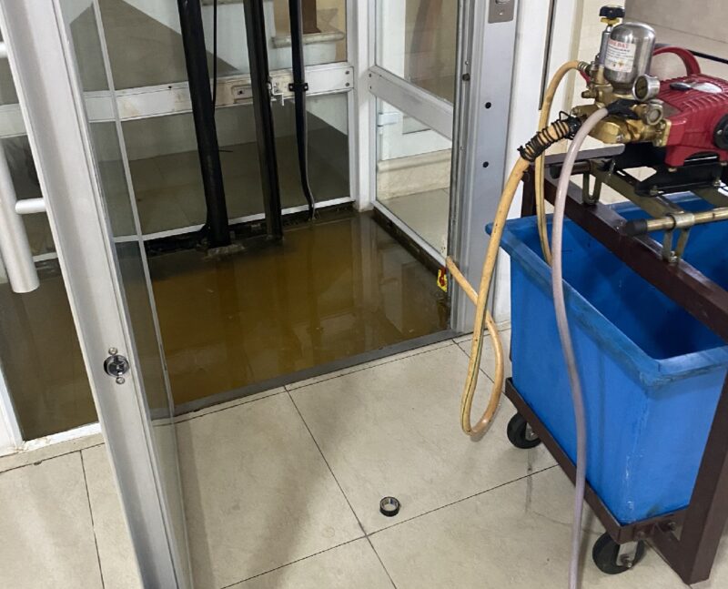 - Perform water extraction from the elevator cabin: Avoid leaving the elevator submerged for too long. If necessary, ask for the support of the elevator maintenance and repair unit to have the most timely and accurate handling.