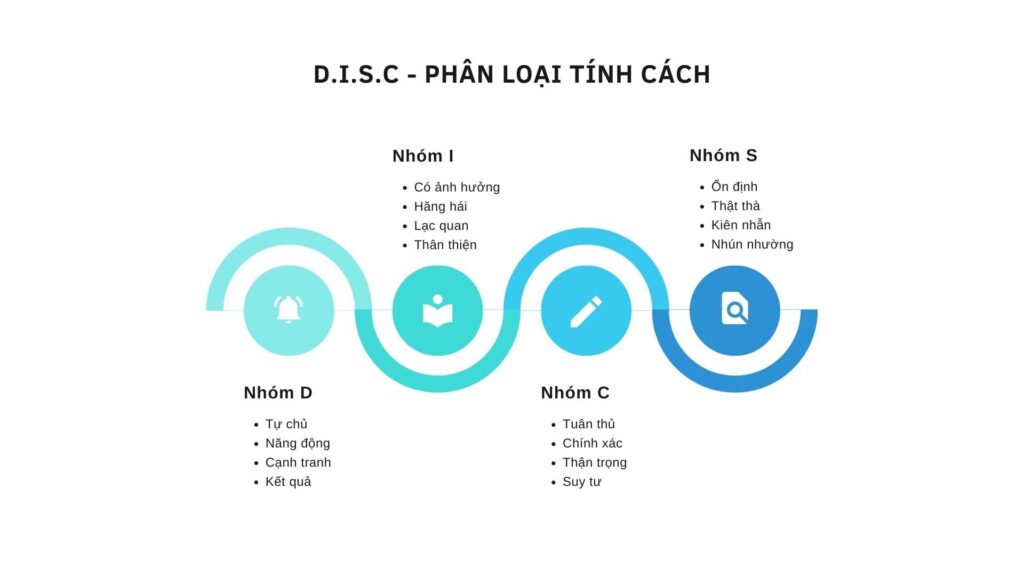D.I.S.C ra đời năm 1928, là một phương pháp xác định tính cách, nắm bắt tâm lý con người và nó được ứng dụng hiệu quả trong kinh doanh. Theo lý thuyết này, tính cách của con người là tổng hòa của 4 loại tính cách gồm: D (Dominance – Sự thống trị), I (Influence – Sự ảnh hưởng), S (Steadiness – Sự kiên định), C – (Compliance – Sự tuân thủ).