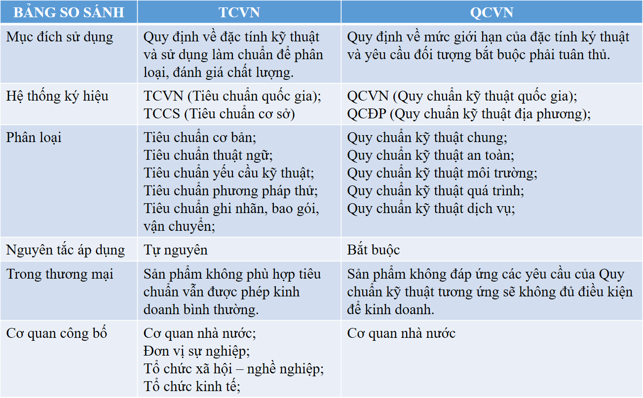 Specifically about technical regulations, many consumers are often mistaken about the concept of "standards" from brands without knowing that to ensure quality, products need to meet the requirements of technical regulations. including national technical regulations and local technical regulations. The comparison table below will show the difference between technical regulations (QCVN) and standards (TCVN) to help consumers better understand: