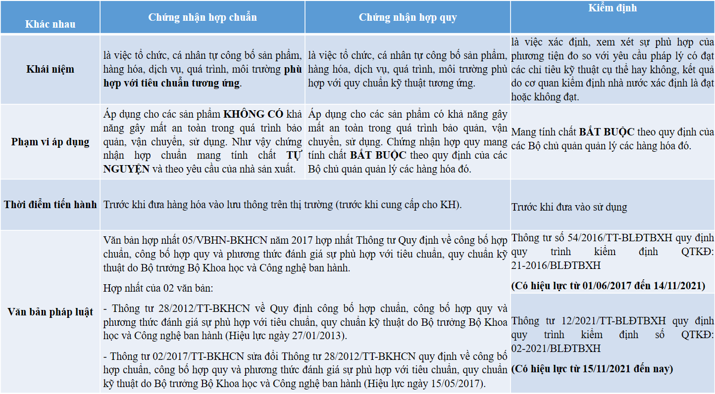 Regulation and standard conformity are two states of products and goods when meeting national technical regulations and national standards. In which, the certificate of conformity is granted for products meeting technical regulations; A certificate of conformity is issued to a product that meets the standard. Similar to regulations and standards, these two concepts also have differences that not all consumers and businesses understand to verify in the process of buying and selling goods. The comparison table below shows the differences in content: