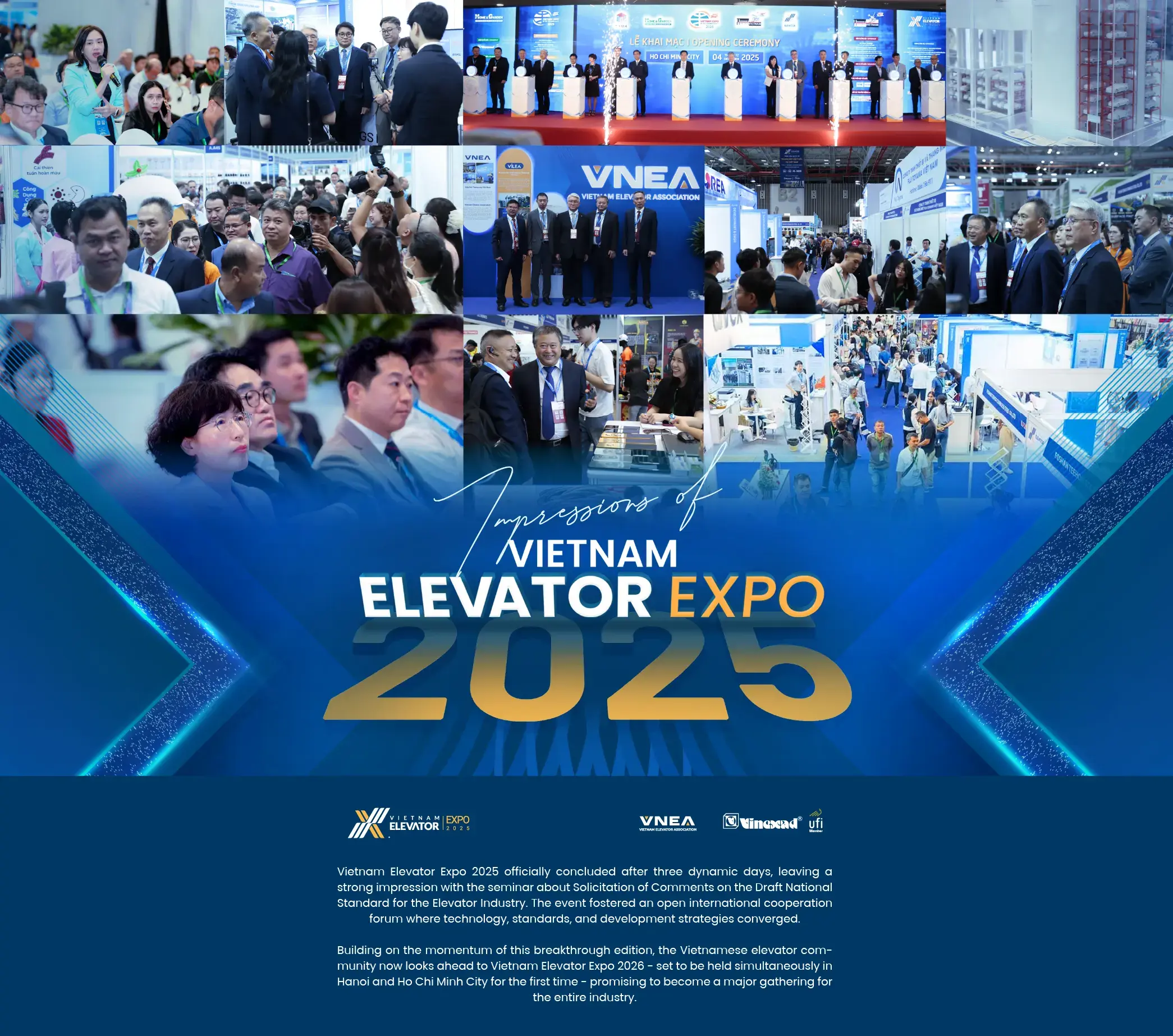 As a key component of the Vietnam International Trade Fair - Vietnam Expo, this is the largest and only specialized elevator exhibition in Vietnam. It was organized through the collaboration of the Vietnam Elevator Association (VNEA) and the Vietnam National Trade Fair and Advertising Joint Stock Company (VINEXAD) under the Ministry of Industry and Trade.