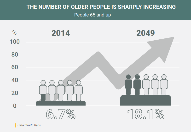 An aged society has significant impacts on socio-economic development, necessitating countries to overhaul their social service systems and technical infrastructure. This transition will be extremely expensive and will require significant resources. Therefore, it is crucial to start preparing for this shift early on.