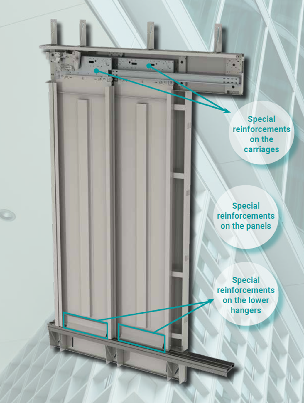 These specific designs are tested to maintain the integrity of the door panels in case of impacts made by a typical scooter, wheelchair or similar vehicles during normal use conditions.