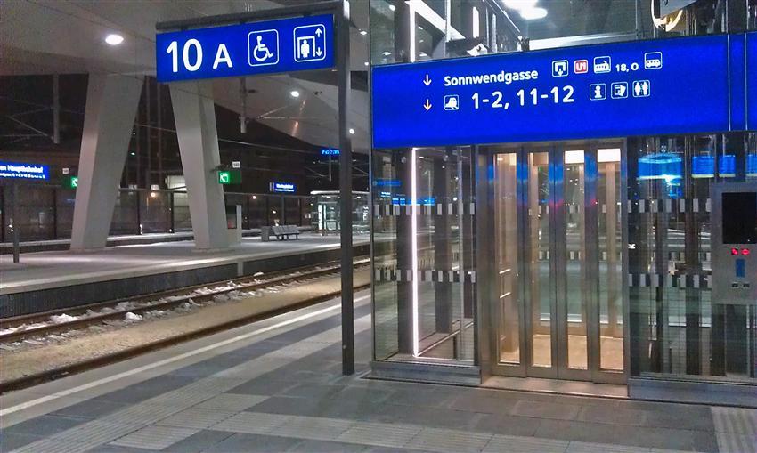 Example of framed glass elevator doors installation in a railway station.