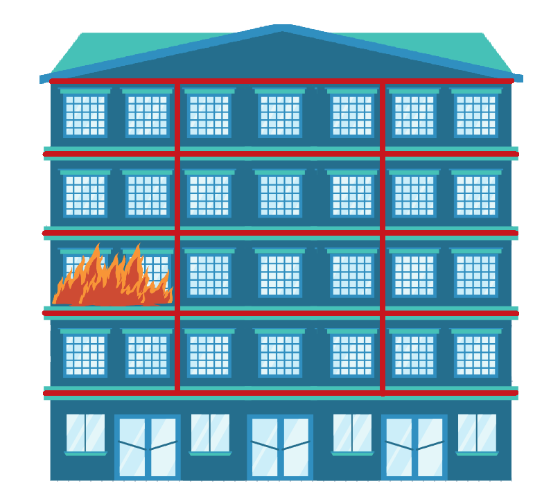 Fire is a major threat for multi-level buildings. To avoid spreading of fire to several floors, most modern buildings are designed with compartmentation concepts.