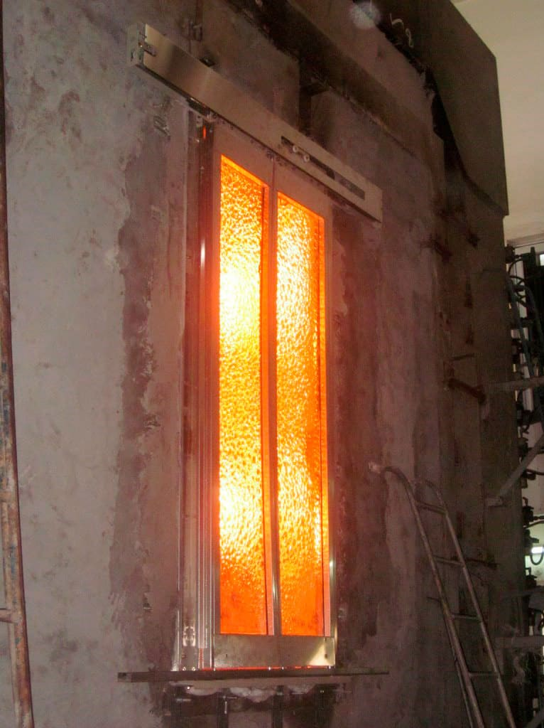 Fire resistance test on elevator door with framed glass panels