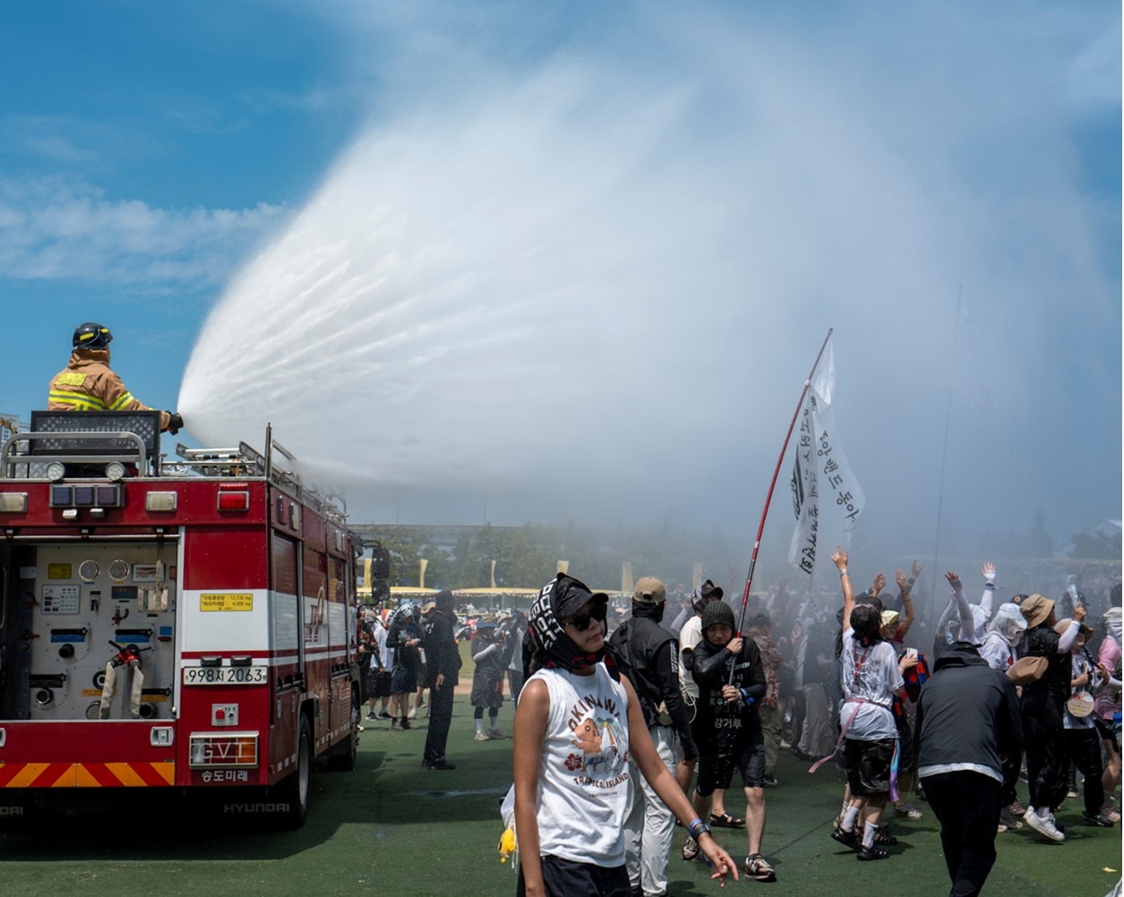 In the photo: South Korean firefighters spray water from a fire truck to cool the crowd at a music festival in Incheon on Saturday, August 2, 2025. South Korean children playing at public fountains to escape the heat.