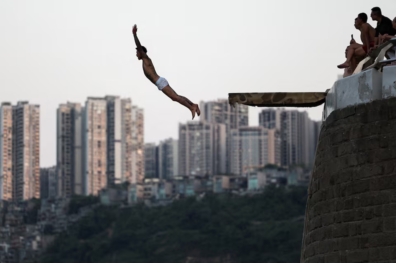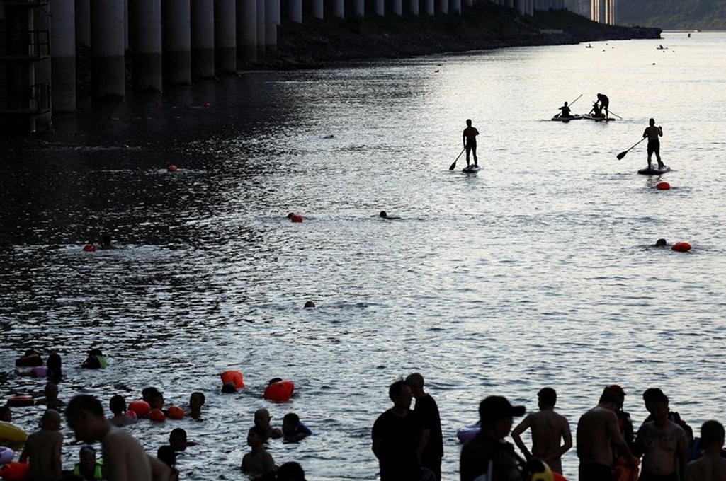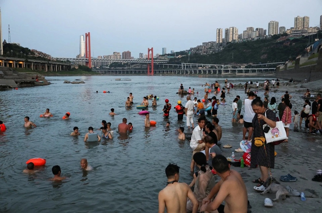 In the photo: Residents of Chongqing, China, soaking in the Jialing River to cool off.