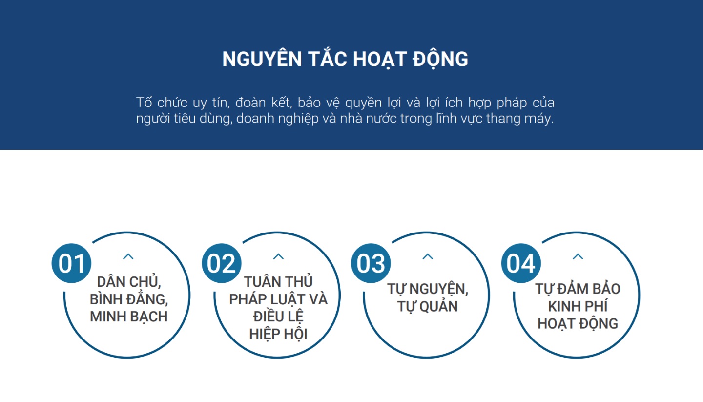 Cơ cấu tổ chức đồng bộ, linh hoạt là nền tảng để Hiệp hội phát huy vai trò cầu nối giữa Nhà nước và doanh nghiệp, giữa chuyên gia và thị trường. Với mục tiêu vì sự an toàn, tiện nghi cho người sử dụng, Hiệp hội định hướng ngành thang máy phát triển theo hướng hiện đại, trở thành ngành công nghiệp kỹ thuật cao, phục vụ thiết thực cho sự nghiệp công nghiệp hóa, hiện đại hóa đất nước.