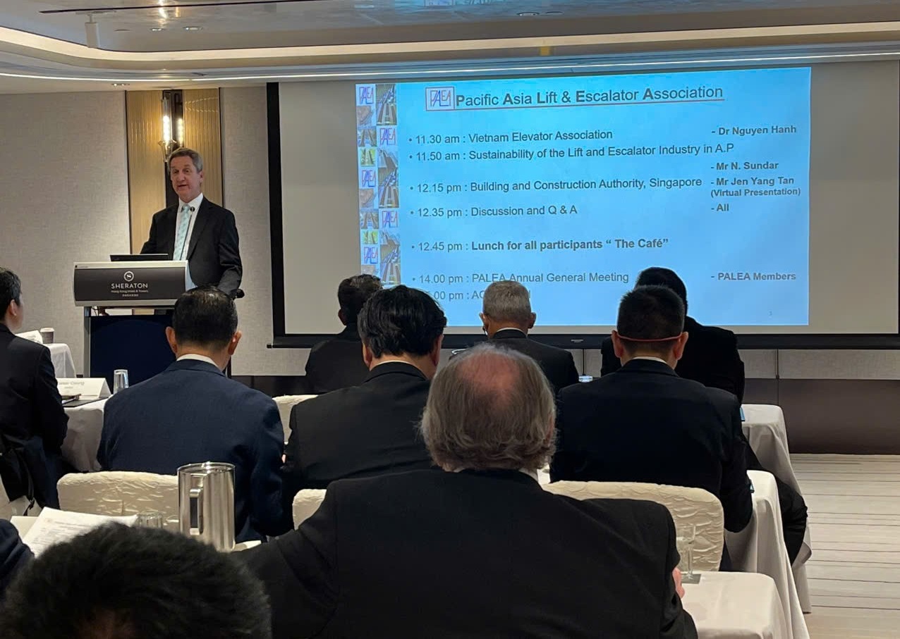 Dr. Nguyen Duc Hanh presented a report at PALEA’s annual elevator and escalator information conference