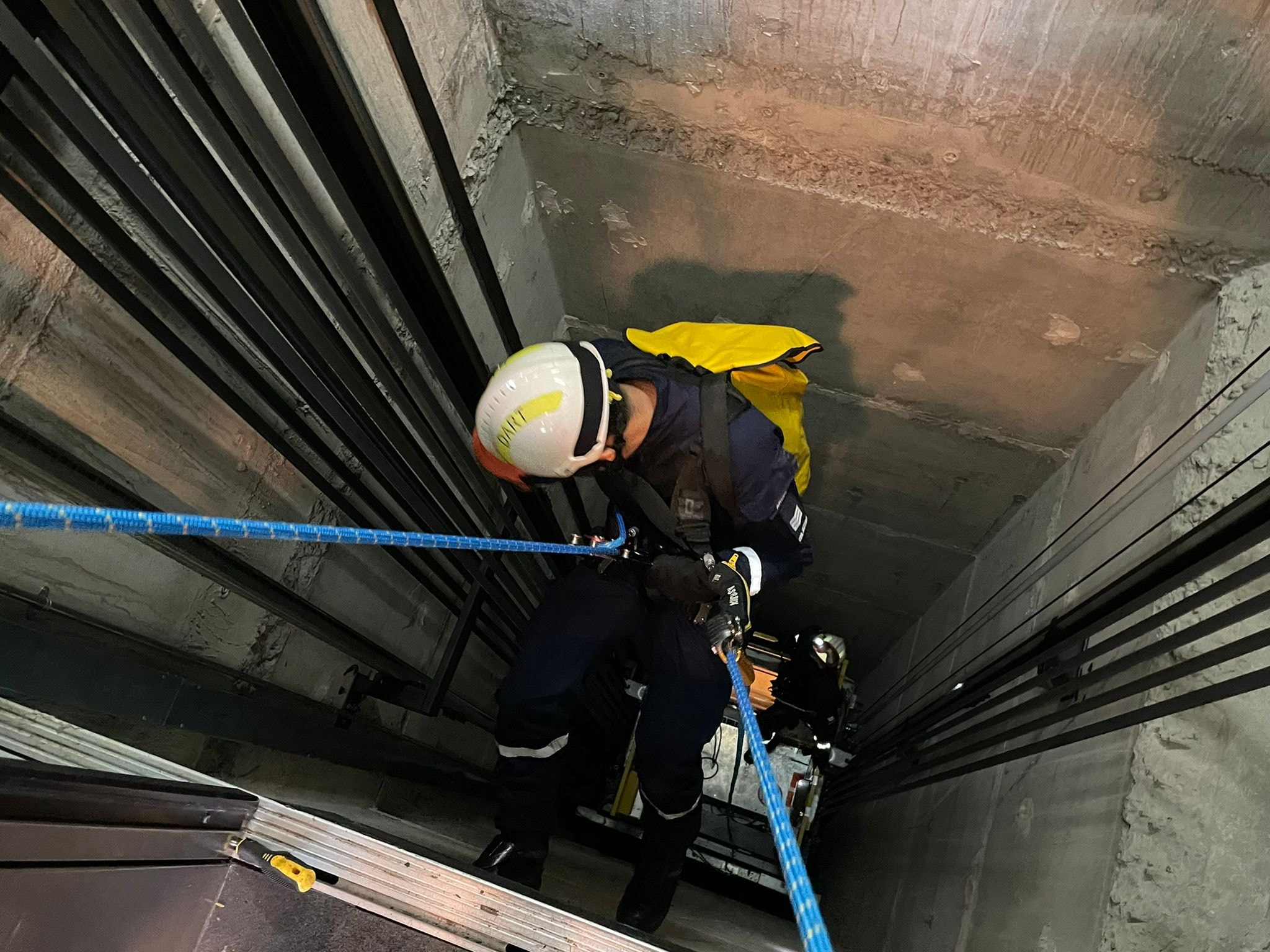 - Lính cứu hỏa mở cửa tầng ngay phía trên vị trí cabin bị kẹt.