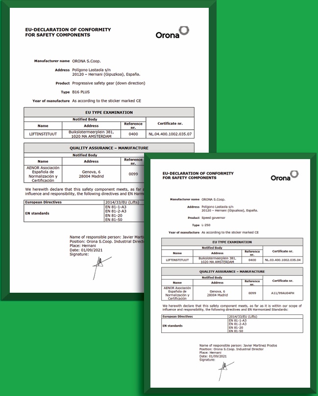 Ngoài ra, Orona còn cung cấp các giải pháp công nghệ riêng biệt, đảm bảo vận hành an toàn thang máy như: Hệ thống chống thang di chuyển bất thường (UCMP), Bảo vệ cabin vượt tốc chiều lên (ACOP), Hệ thống chống can thiệp (PAC), Hệ thống giám sát tốc độ cabin (CSM),… cũng được tích hợp đầy đủ, đảm bảo sự an toàn cho người sử dụng.